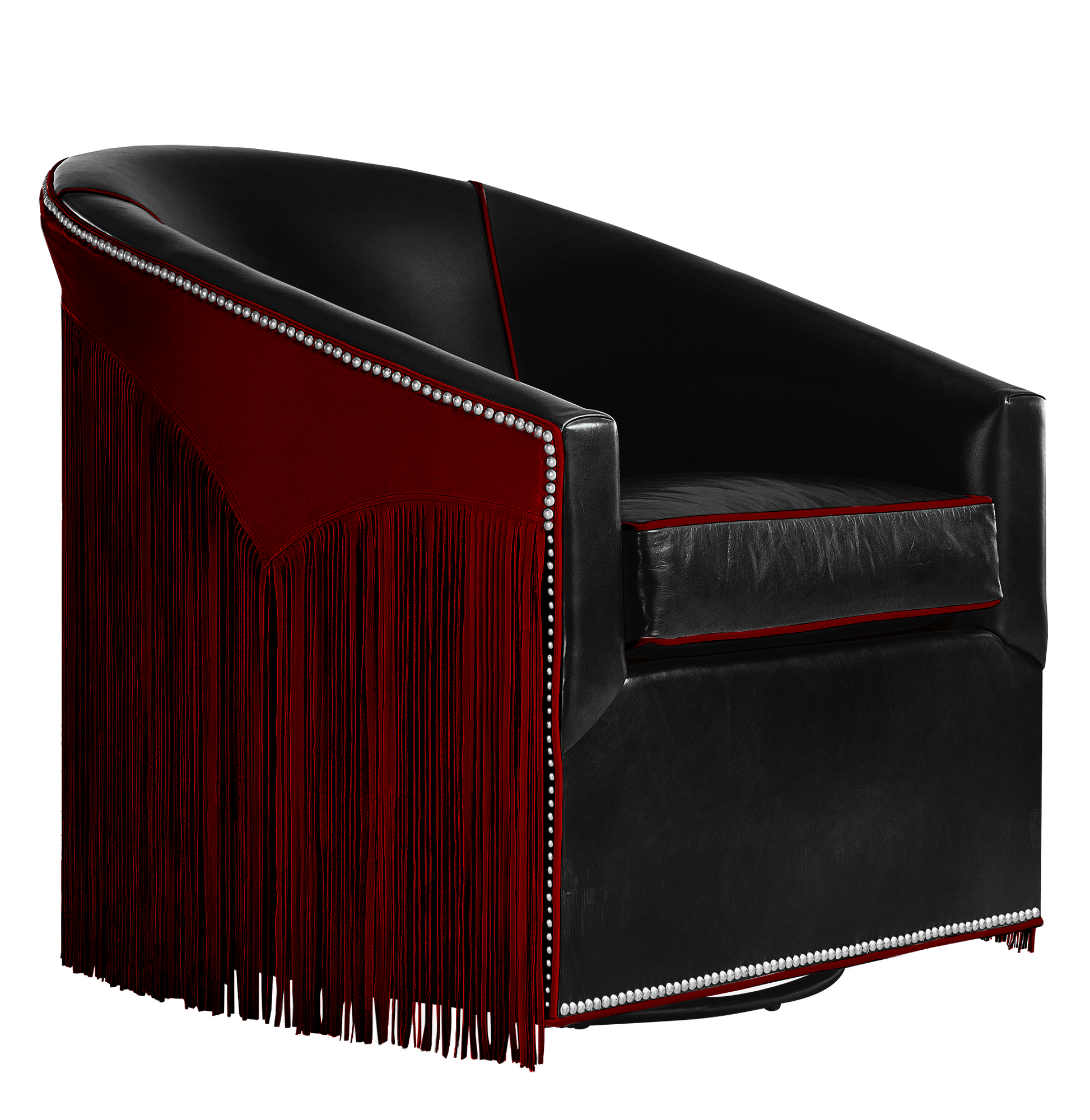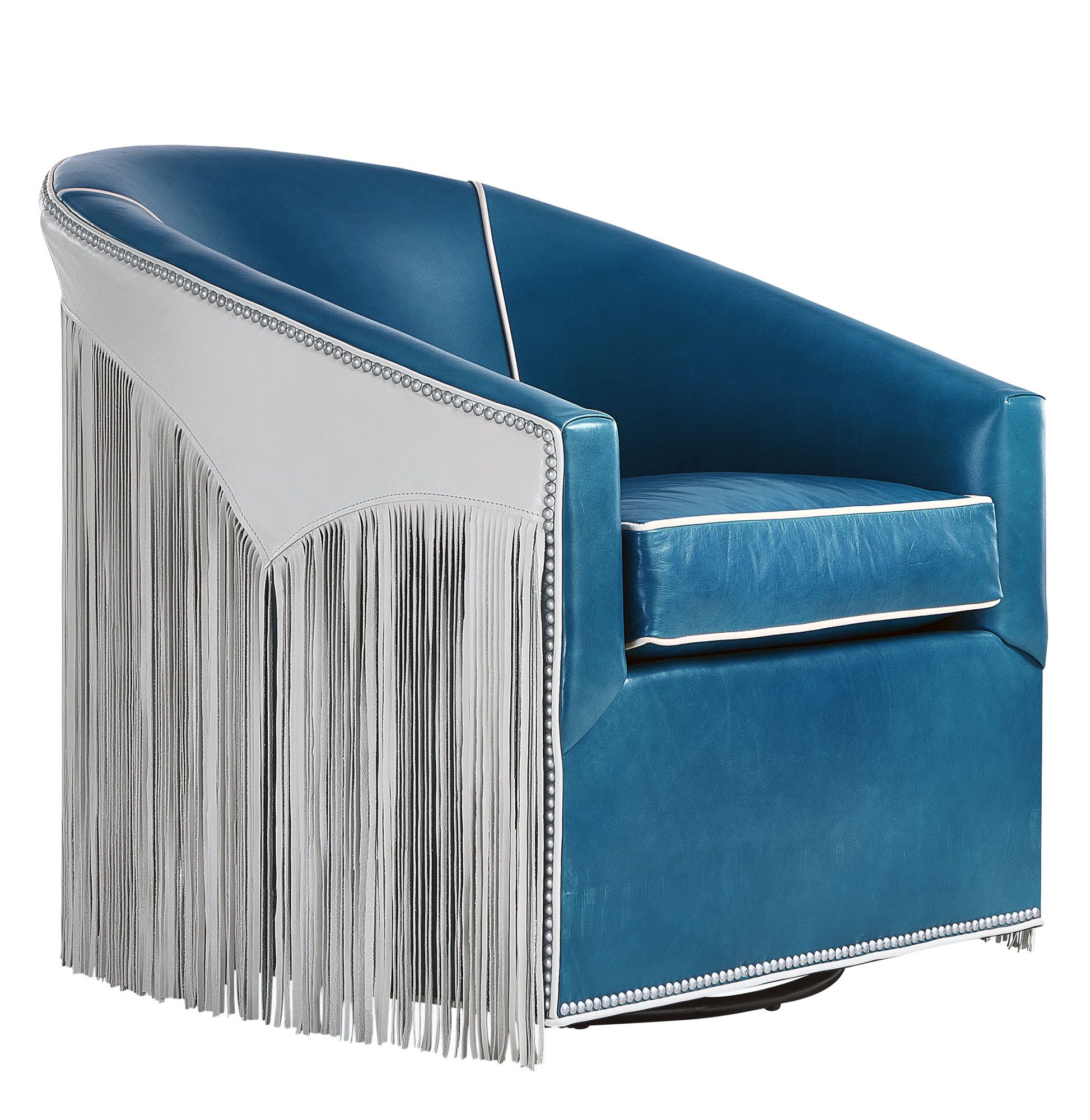 If you can't take the ride, don't bother to saddle up! This eye-catching swivel chair is both a show-stopper and comfortable. The hand-cut leather fringe is reminiscent of Western apparel. Lady Lasso adds whimsy and style to any space. If the boots fit, wear them!