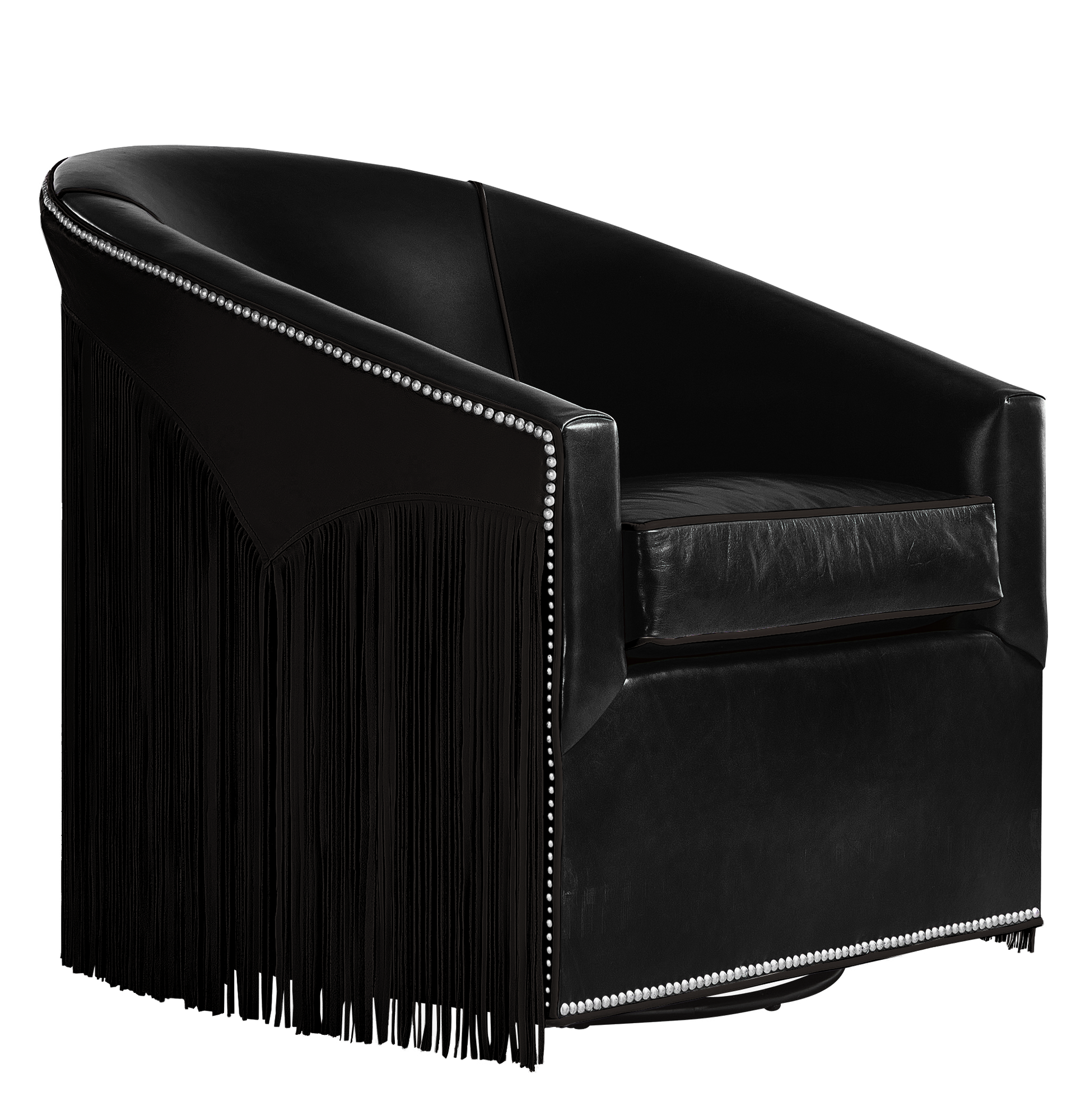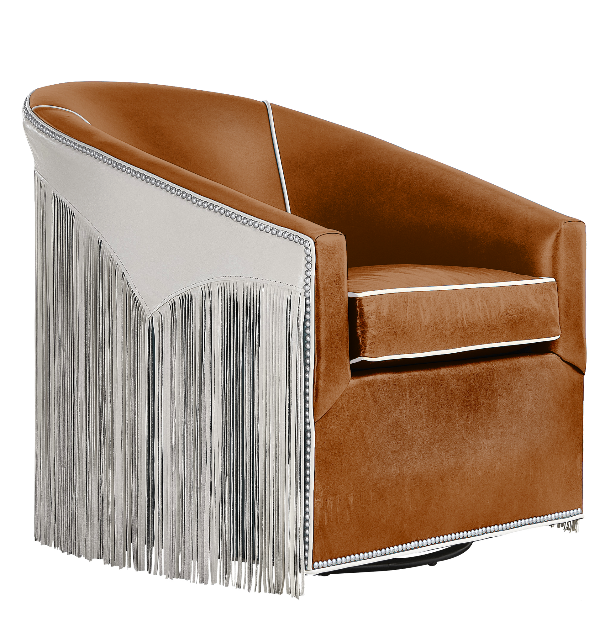 Lady Lasso Western Style Cowgirl Leather Fringe Luxury Swivel Accent Chair